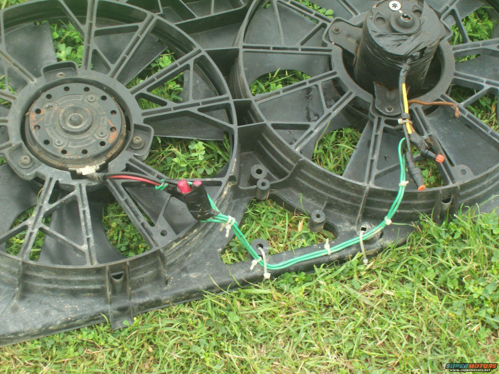 Closeup of the wiring hack job done by the previous owner. He wired the fans TO EACH OTHER and never connected them to power OR ground!