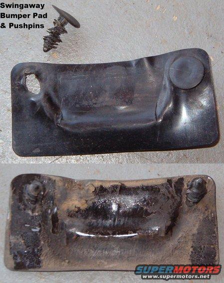 This pad is used to protect the tailgate paint from the rubber bumper on the bottom of the swingaway tire carrier. The pad is adhesive, and the pins keep it from sliding when the truck bounces. Applying teflon dry lube (TDL) or silicone grease will prevent the rubber bumper from stretching the pad like this. If it has come off, the best replacement I've found is