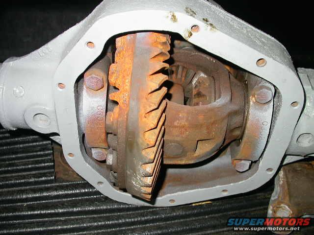 rusty carrier, broken tooth on ring gear, and the carrier bearing caps aren't even tightened down.