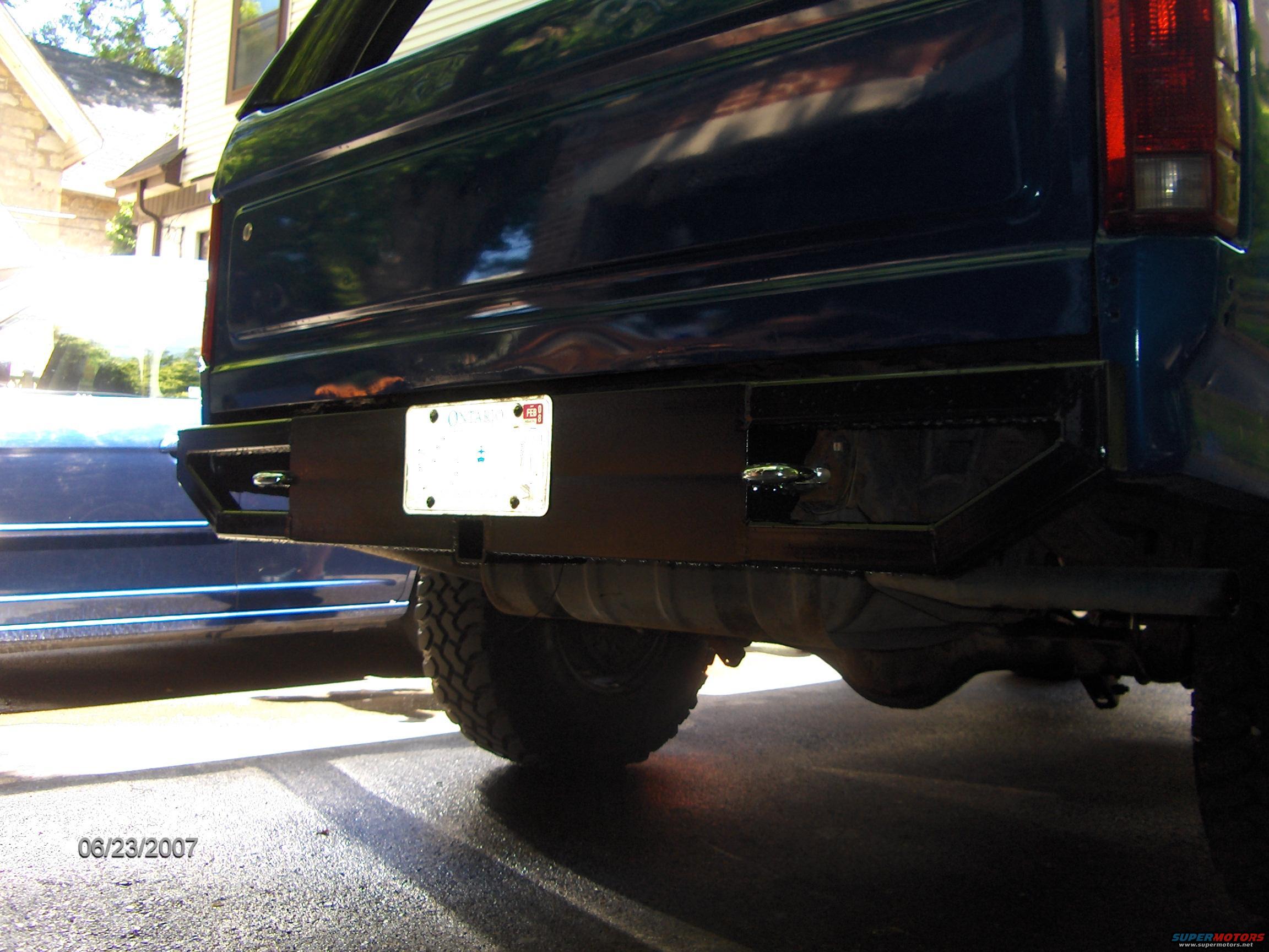 Bad lighting but my only photo of the finished bumper with the hitch
