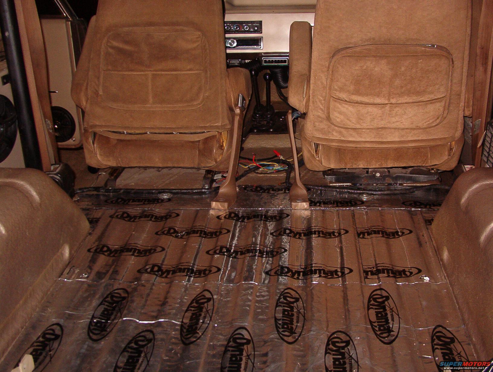 The mat is done up to the front seats, and that might be as far as it goes. No noise will come up thru the seats, and there will be a center console covering the tunnel, and the floor mats will cover the footwells.