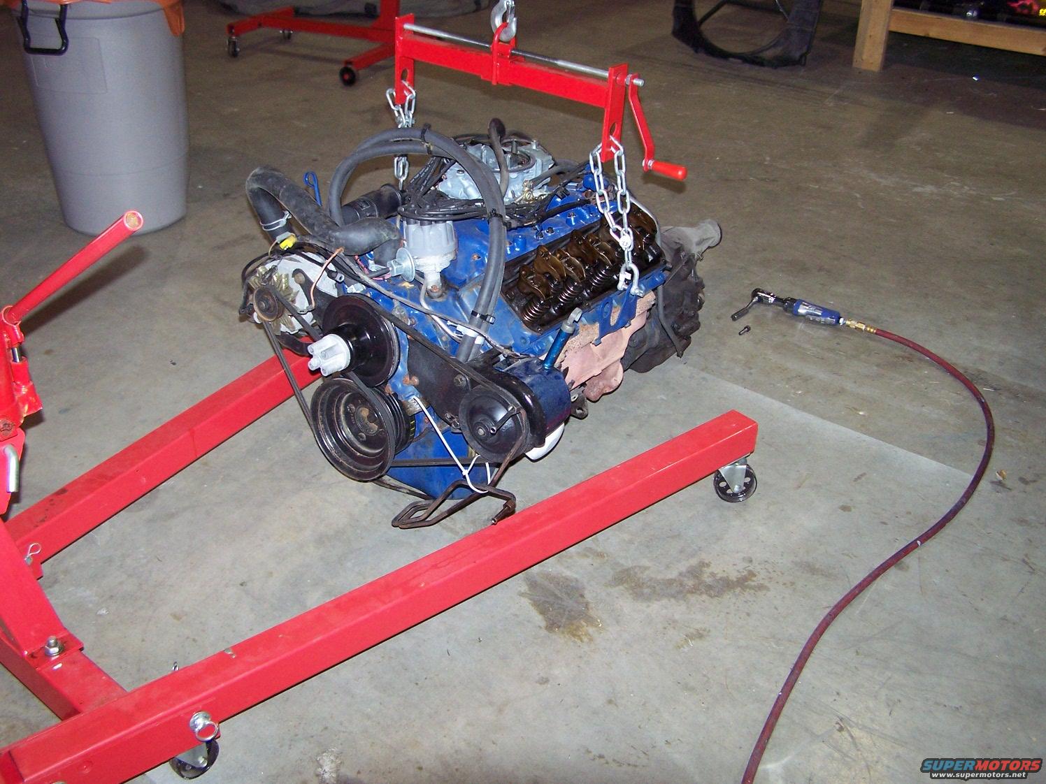 This is the block I am going to use to build the 393 stroker; its a 1973 "H code" Cleveland 351 2 Bbl out of my '73 Ranchero 500. Its got 165,000 miles on it, but never been rebuilt!