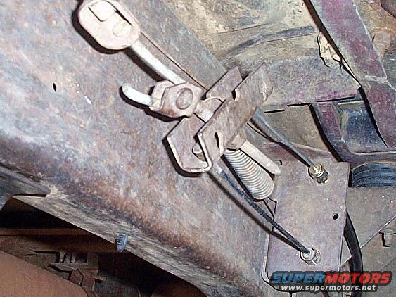 This is the early (pre-'92) e-brake tension limiter & equalizer. The upper cable is an aftermarket replacement, which is surprisingly affordable.