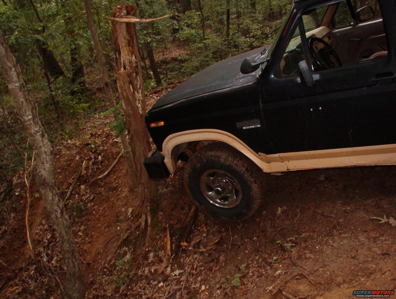 This is the stump that broke my grille guard last time. So while the guard is off for repairs, I'm letting it taste the bumper.
