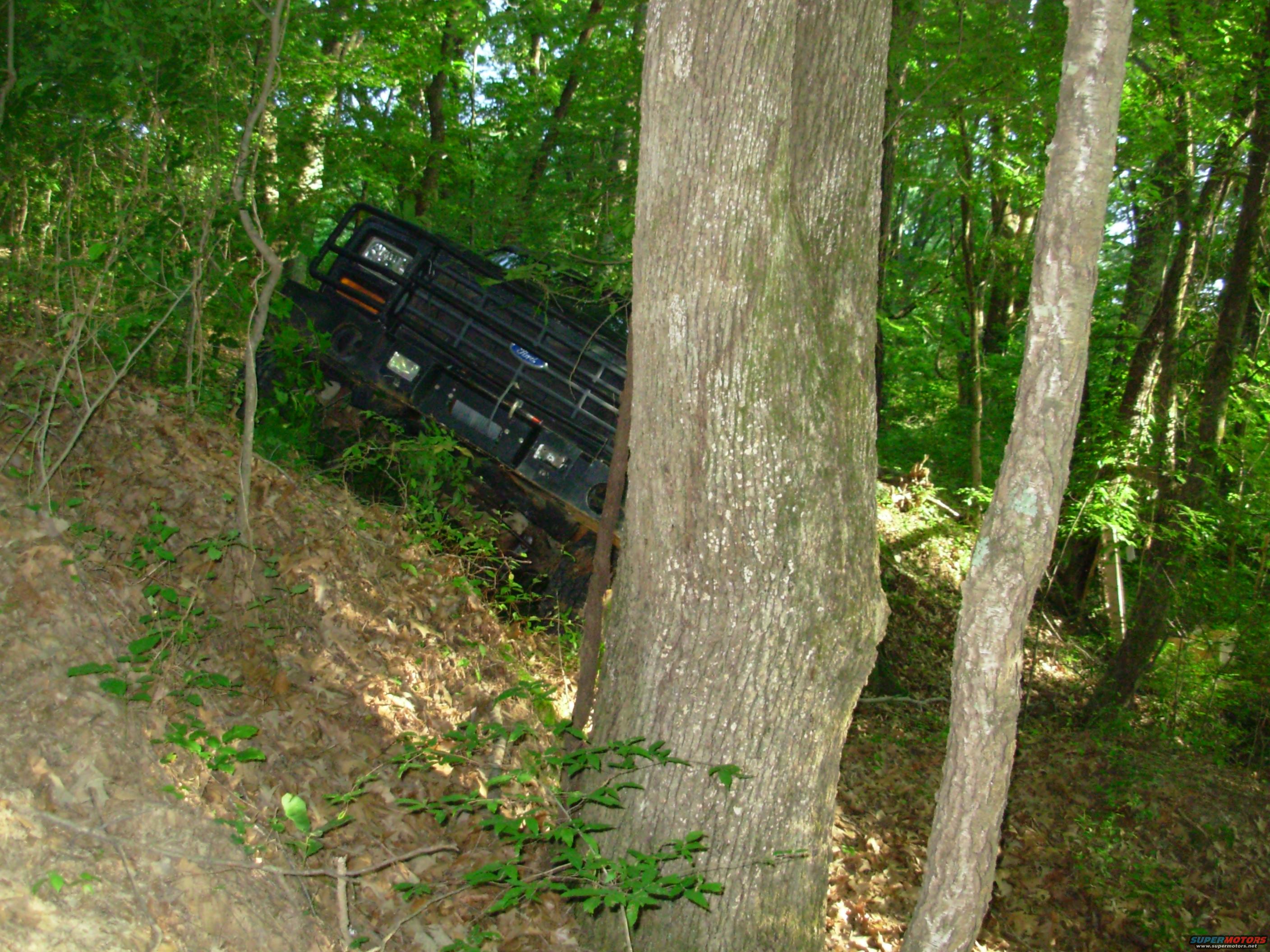 This is a spot I had tried before, and gotten stuck enough for Greg to winch me out from the other side of these trees. This time, I turned up this steep hill instead.