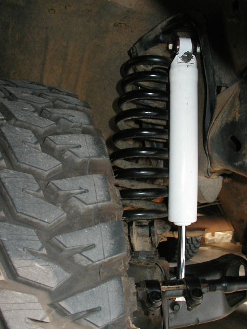 Front shock...had to flip it due to knuckle under project and clearance between the rancho firmness setting knob and the steering rod. EDIT: flipped it back. Evidently Rancho 9000's don't take well to either direction mounting.