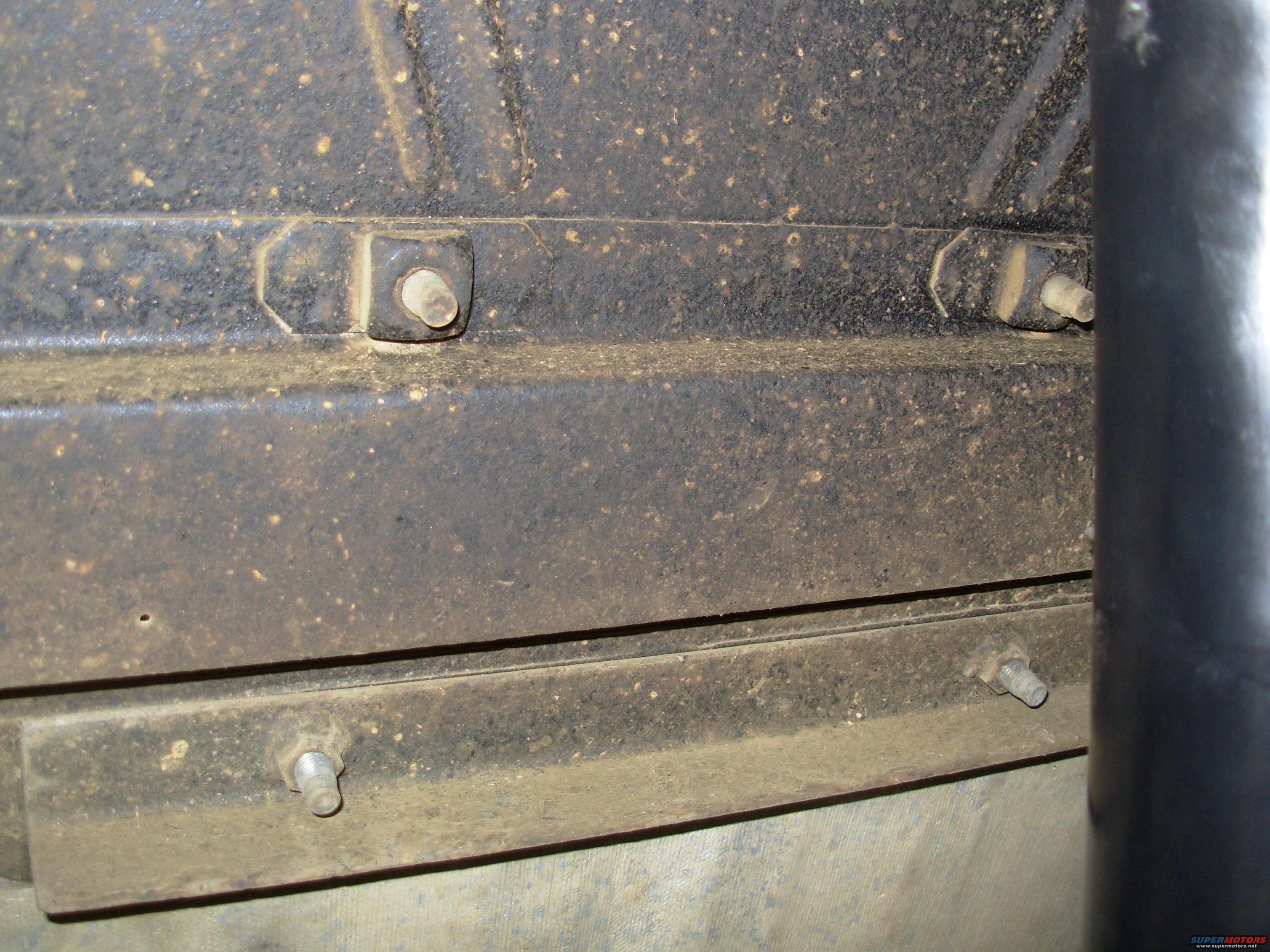 The angle iron with welded nuts is for the later shoulder belt buckles. The stock eB location was too far forward for them to be effective, so the holes are plugged with the original bolts. They'll also be used to attach a floor console.