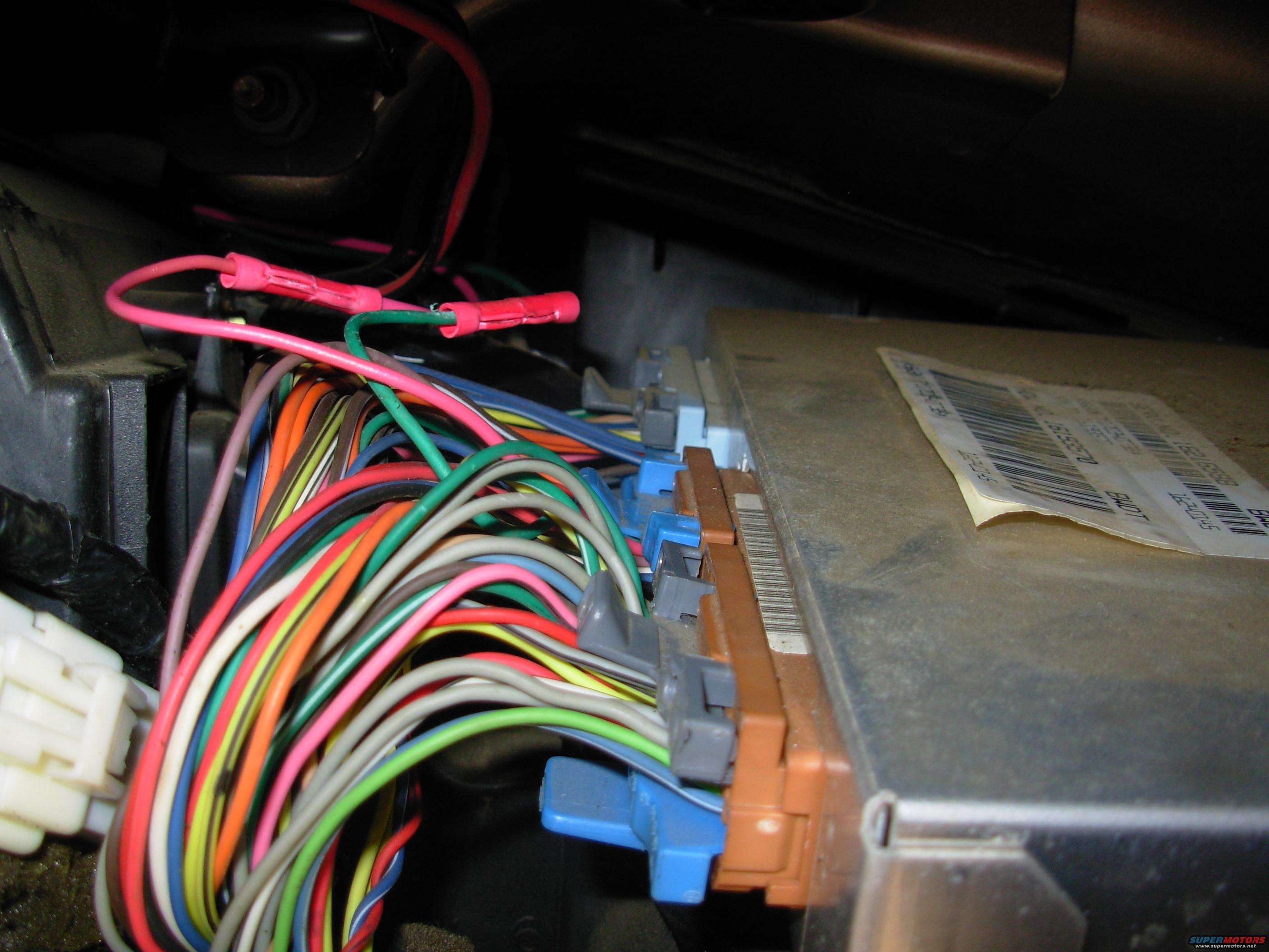 The PCM slides out & rotates for access. The target is the top row of the 2nd brown connector. I took this pic after I was finished, but you can still see what's involved.