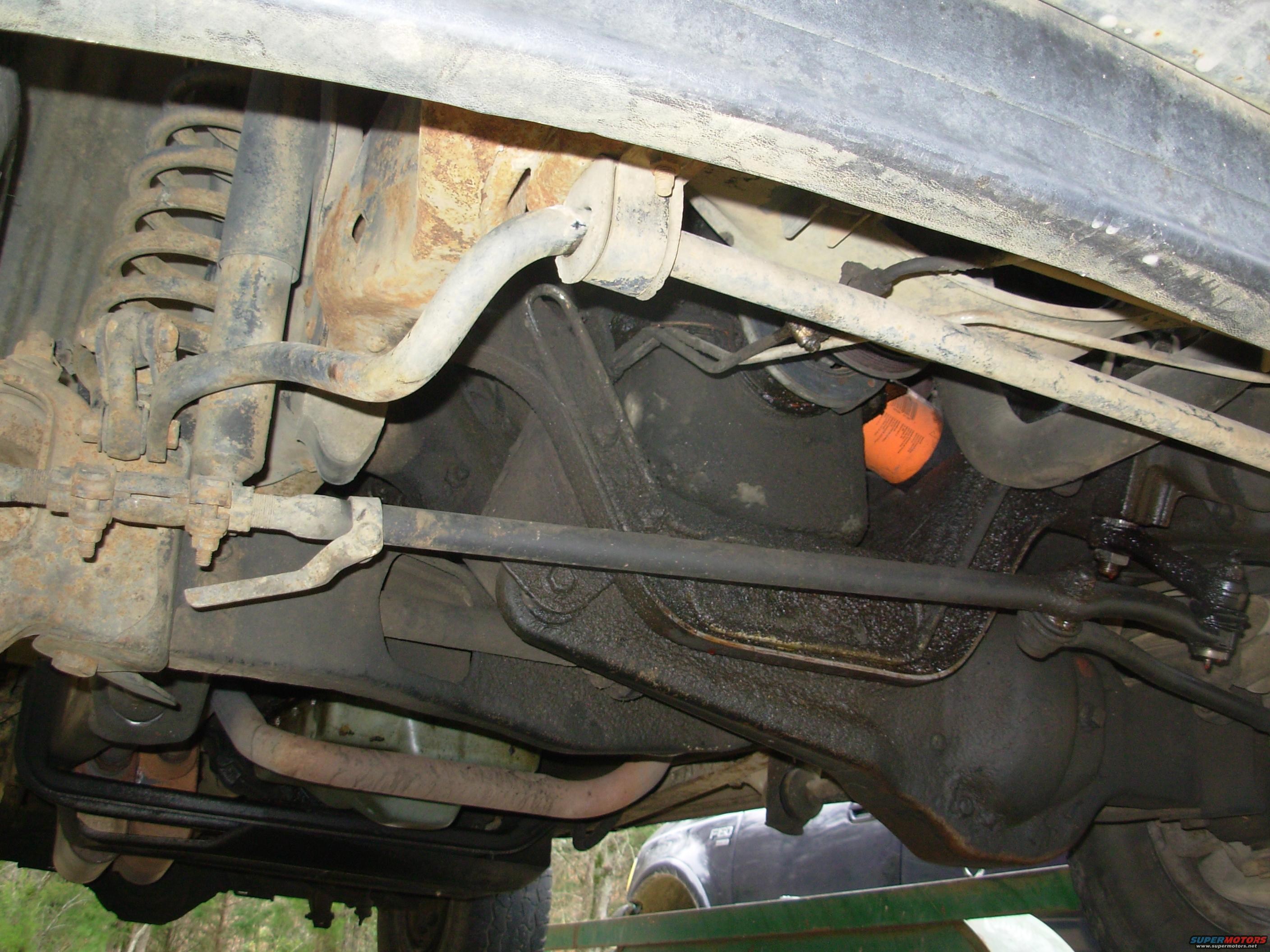 Just your typical oily mess down here. Note the true dual exhaust dumping forward of the axle. What a pain...