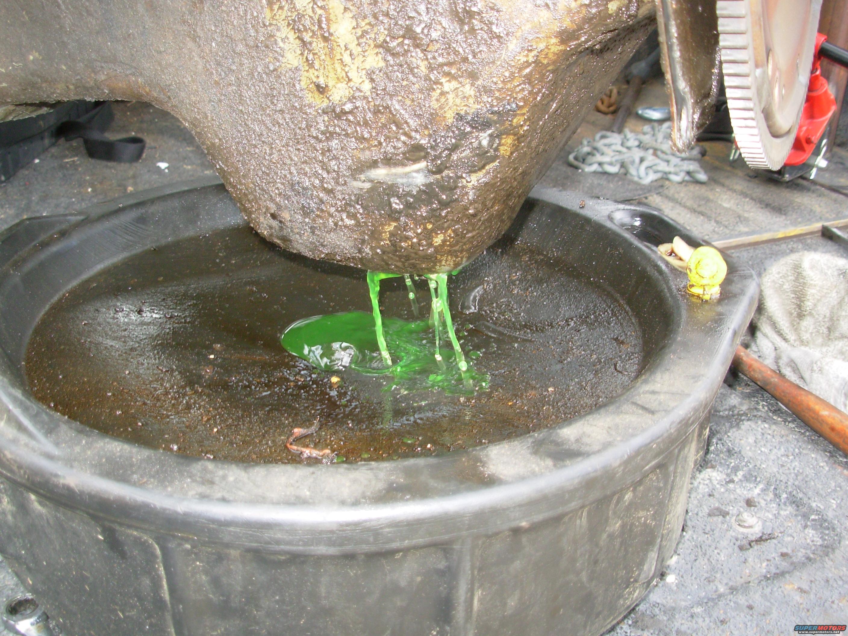 The first thing to come out of the oil drain was nice fresh coolant.
