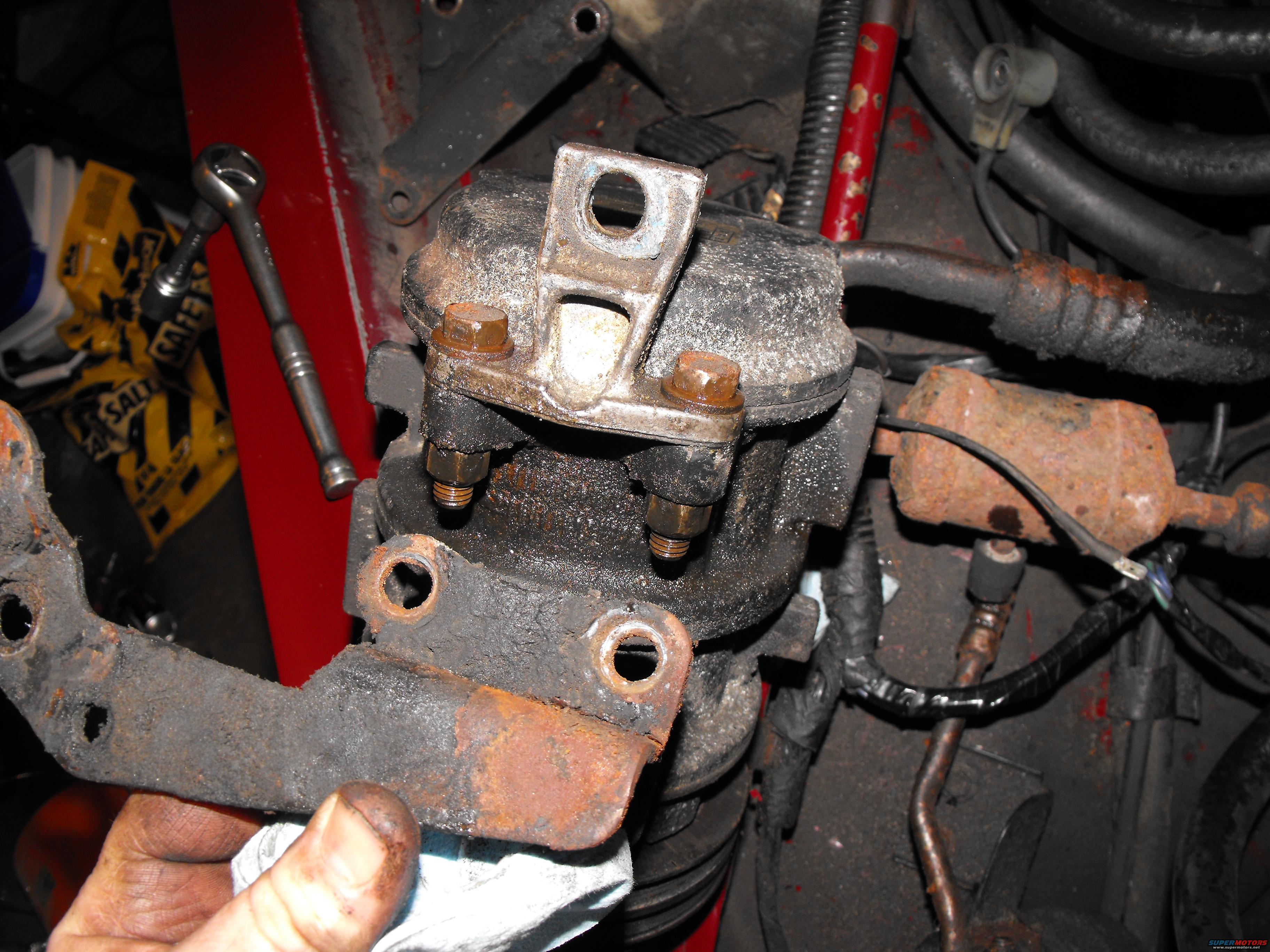 That's the 82's steel bracket we're ditching. We're keeping the aluminum tab that bolts to the other side of the compressor mount.