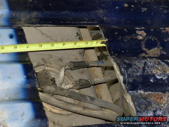Even this is plenty of space to remove & install the pump, so don't cut a massive hole. Smaller is better for floor strength. And you CAN cut a short hole to be covered by a long plate, OR cut an UNDER-size hole, and then gradually enlarge it...