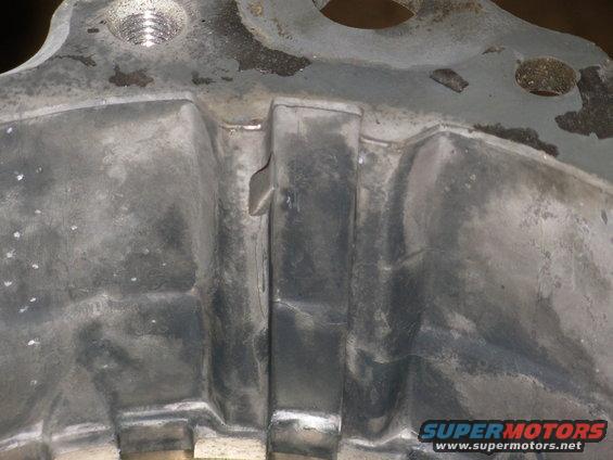 This is the important part. The pump stay arm has barely worn into the case rib. If it was much worse, I'd clean the case & JBWeld it. But since it's so minor, I'm just going to pad it.