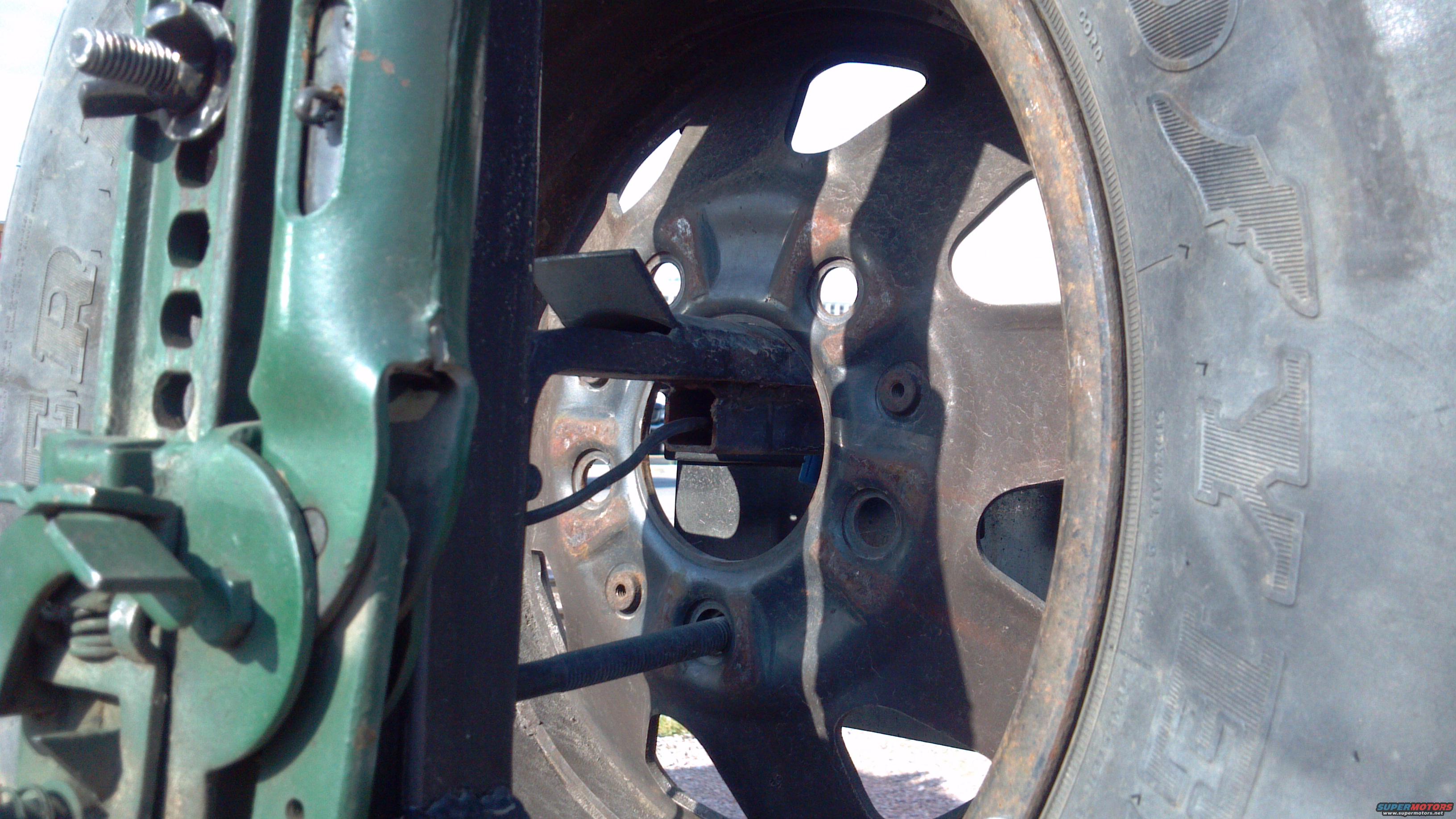 Rear view of the spare tire mount. Some parts came off the stock Bronco spare tire carrier, I just mounted it to my bumper and post.