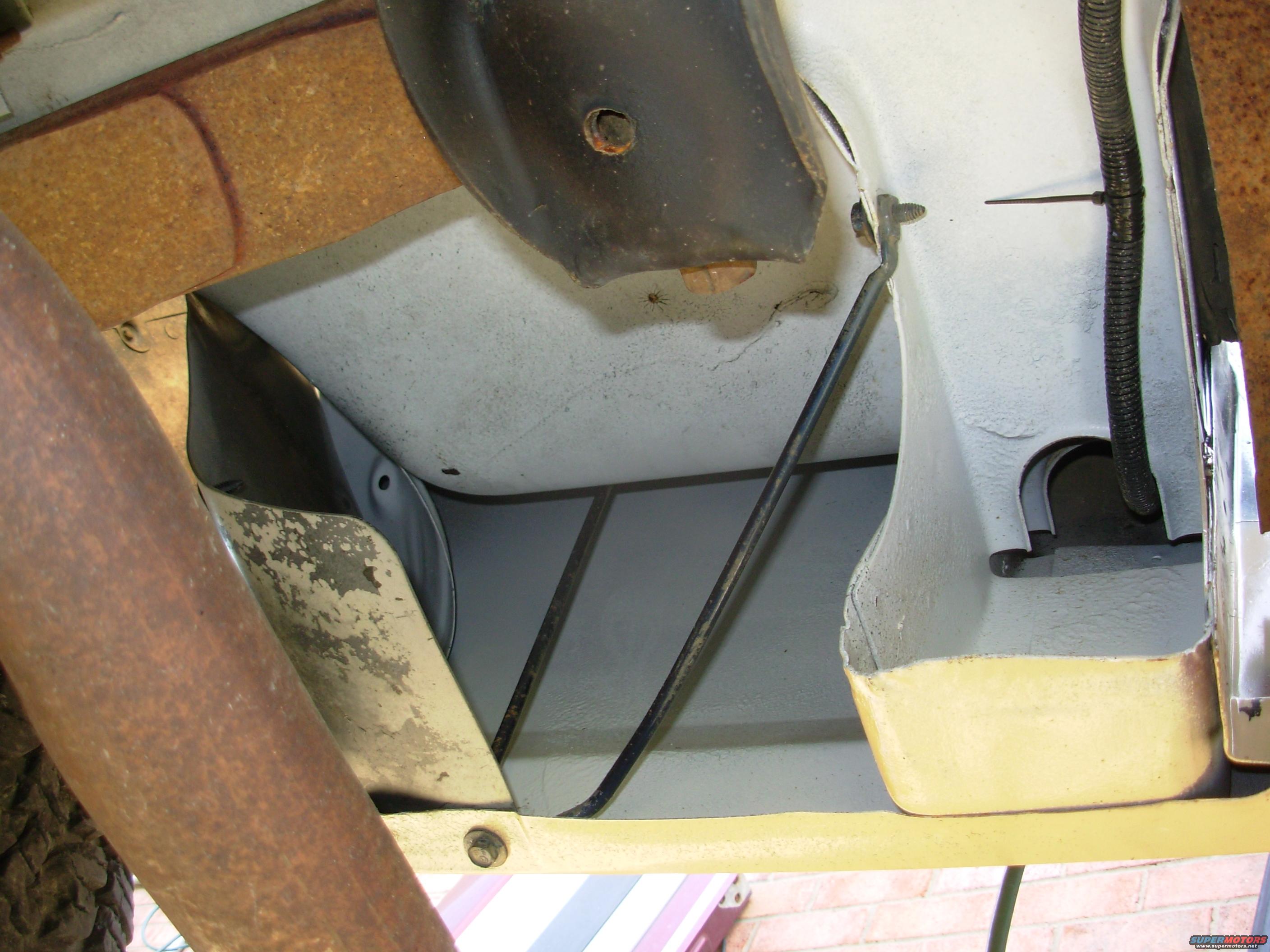 The hole I drilled in the rear spring bracket (EOTZ-5775-C) will allow it to drain so it doesn't rust out. I should have drilled them BEFORE undercoating...