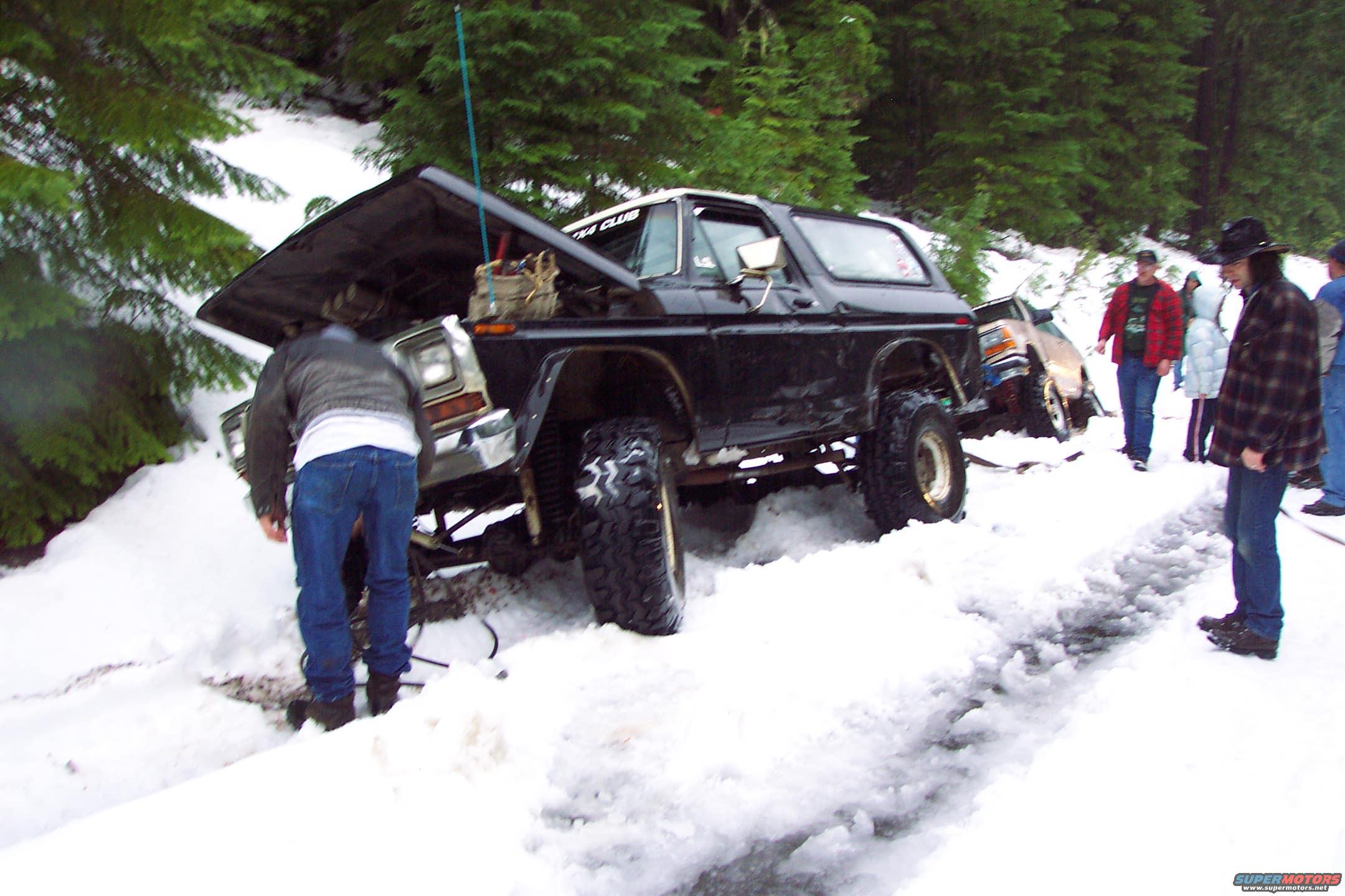 Yup, back in the ditch again. But this time broke the steering gearbox sector shaft while tying to get out.